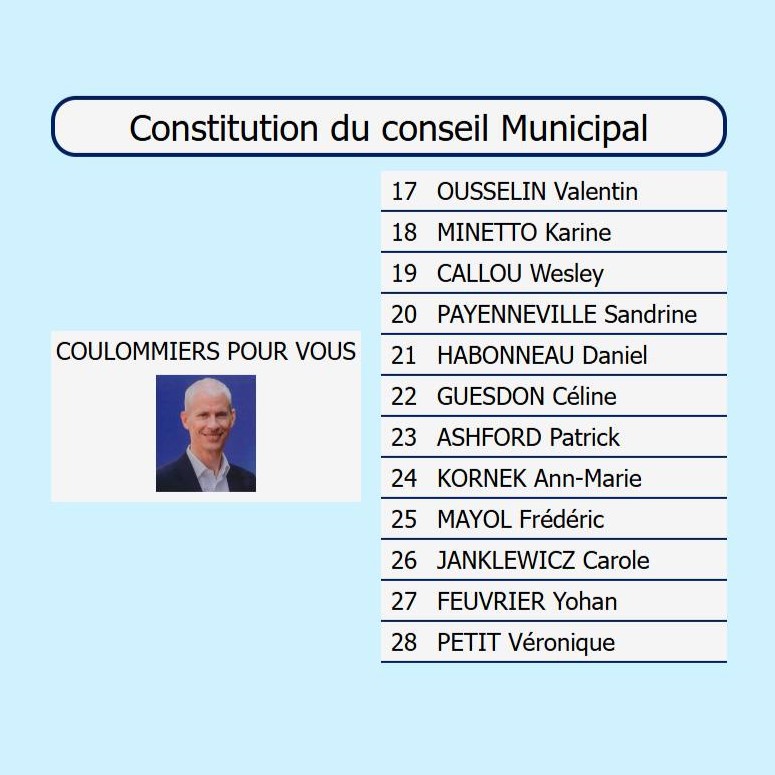 - La liste Coulommiers pour vous est élue avec 66.22% des voix