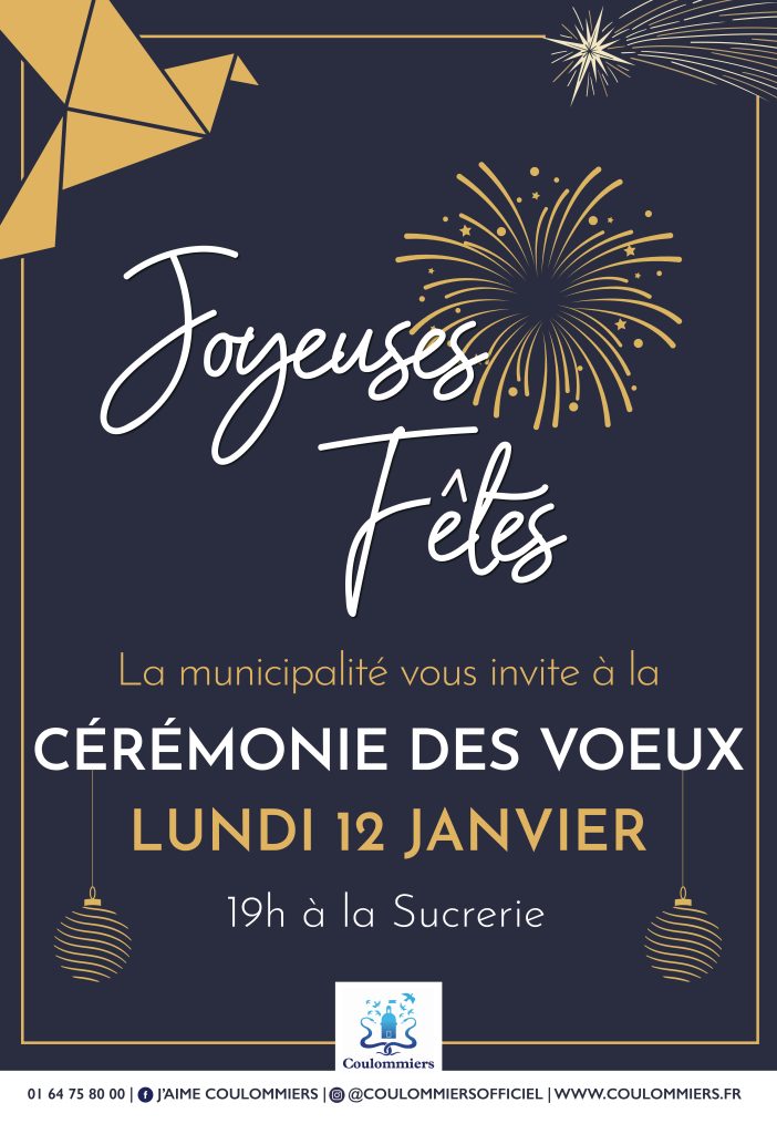 La commune de Coulommiers est heureuse de vous convier à sa traditionnelle Cérémonie des Vœux du Maire, qui se tiendra le lundi 12 janvier 2026, à 19h, à la Sucrerie.