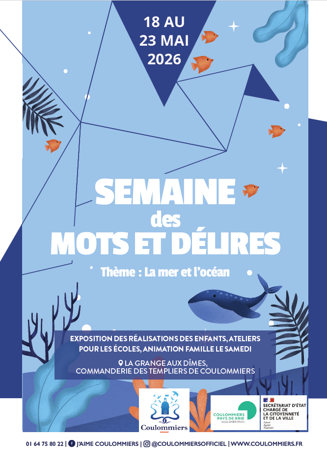 La Ville de Coulommiers vous donne rendez-vous pour la 24ᵉ édition de la Semaine des Mots & Délires, qui se déroulera du 18 au 23 mai à la Grange aux Dîmes, au sein de la Commanderie des Templiers.