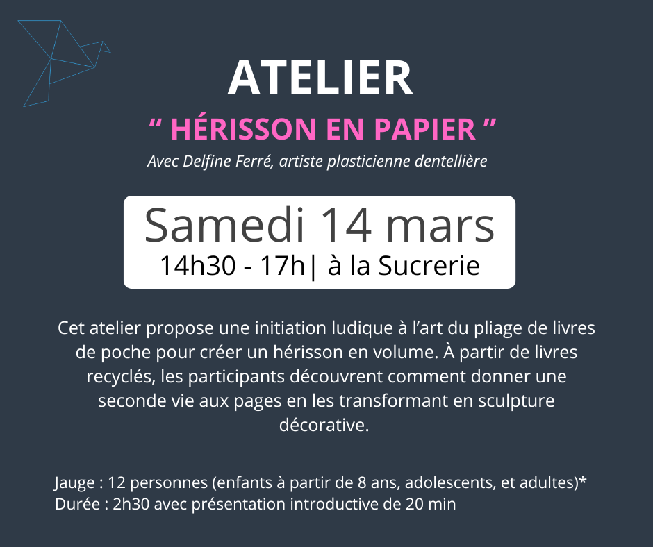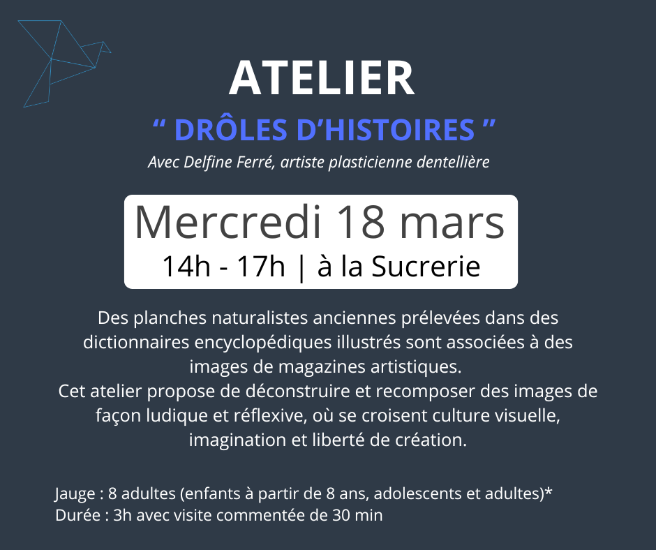 Informations et réservations aux ateliers et à la visite au 01 64 75 89 77 jusqu’au 11 mars inclus.